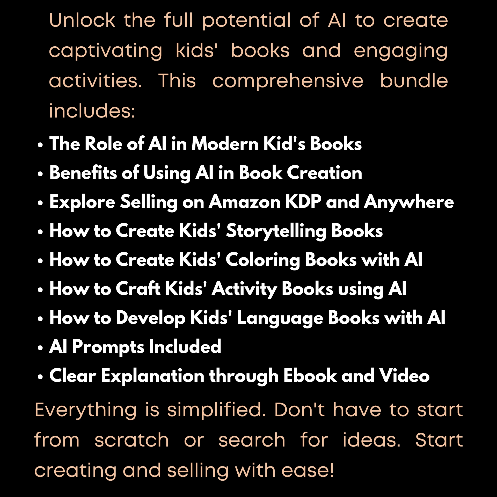 Everything is simplified. Don’t have to start from scratch or search for ideas. Start creating and selling with ease!